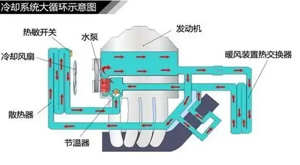 3、水泵:水泵的作用是对冷却液加压,使得其在冷却系中循环流动。
