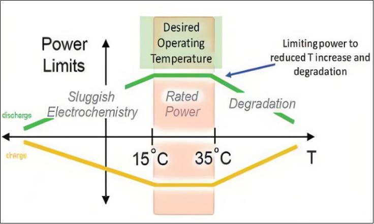 然而,锂电池的工作温度对电池的性能、安全性和生存周期有很大的影响。理想的电池工作温度为25—35摄氏度,电池组中各模块之间的温差应小于5摄氏度。因此,锂电池的热管理非常重要。