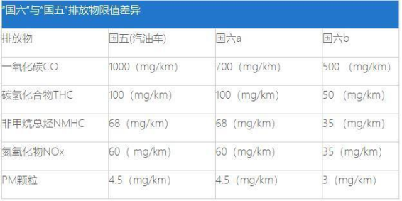 首先,我们要清楚国五和国六标准的差距,说白了就是车辆排放控制标准的差距,见下图。