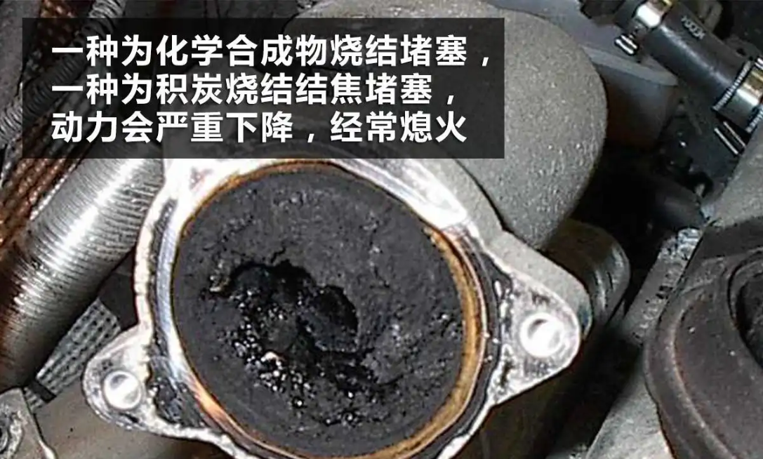 SCR催化器载体上贵金属催化剂,对硫、磷、一氧化碳、未完全燃烧物、铅、锰等有强烈吸附作用,同时贵金属催化剂强烈氧化催化作用,使吸附的柴油不完全燃烧物更容易氧化、缩聚、聚合形成胶质积碳,造成SCR催化剂堵塞。