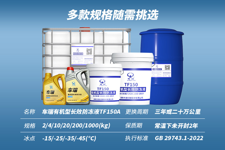 TF150A型发动机冷却液,专为轻负荷发动机冷却系统研制,为其提供长效保护作用。