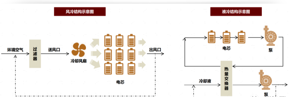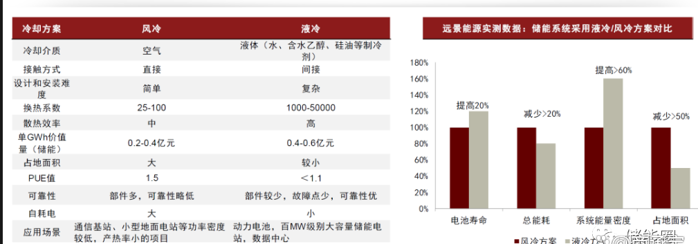 ► 换热系数/效率高:液冷的换热系数大概在1000~50000之间,风冷的换热系数只有 25~100之间,液冷系统更适用于储能的2C、3C快充应用。
